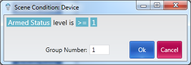 To complete our setup, we need to make sure that none of the triggers set off our alarm unless the system is armed. To accomplish this, we'll add a condition to the Alarm! scene. This condition will check the Armed Status device to make sure it's turned on. While it's on, all the triggers can activate the scene; if it's off, none of the triggers will activate the scene.